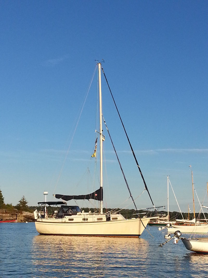 Trinity, the author’s 29′ Island Packet, in a serene moment. Read on for a not-so-serene moment. Photo courtesy Bill Bowman