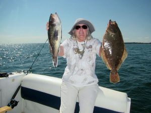 Fishing is still kind of slow. We are getting a lot of shorts. The size limit to keep Fluke is 19″. We got a lot of 17″-18″ fish that we had to return to the ocean. Our bycatch was a couple of keeper Black Sea Bass that Peg got. We like to use Sea Bass for Sushi-Sashimi.