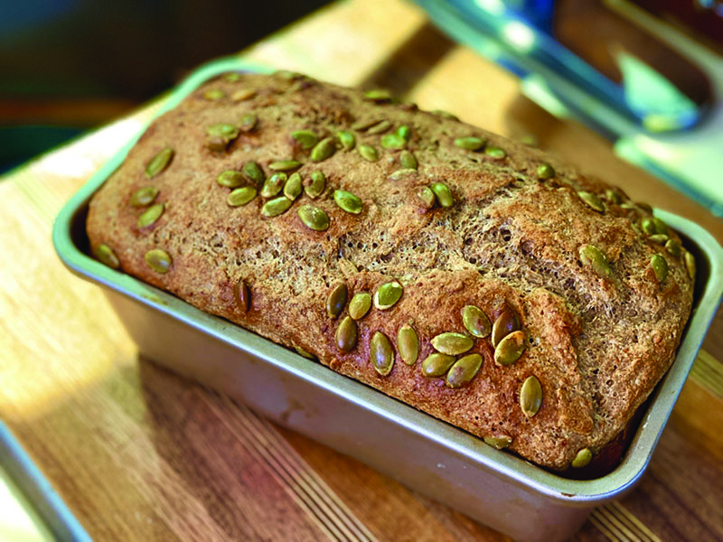 One day, I announced on the cruisers’ Facebook page that I was holding a dance on the beach, which is something I missed terribly from home. Among the few people who showed up was Birgit from Germany, a cruiser and dancer like me. She was so thrilled to be able to dance that the next time she brought me half a loaf of her homemade bread. At the next dance, she brought a whole loaf and the recipe. We loved it so much we began making it ourselves, and it’s been a staple ever since. The bread is wonderful fresh out of the oven, keeps extremely well in the fridge, and is great for toasting. It’s a dense and sturdy loaf with 100% whole wheat flour, very little sweetener, and not much else. So, super healthy. We have it for breakfast with marmalade and cheese or eggs, for lunch with pesto and tomatoes, and for dinner as a complement to a hearty soup.