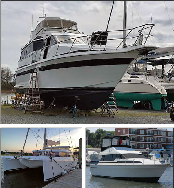 Problems come in various guises: the 55-foot motor yacht (top); the Lagoon 42 cat (above left); and a Mainship 35 (above right). Photos courtesy Capt. Michael L. Martel
