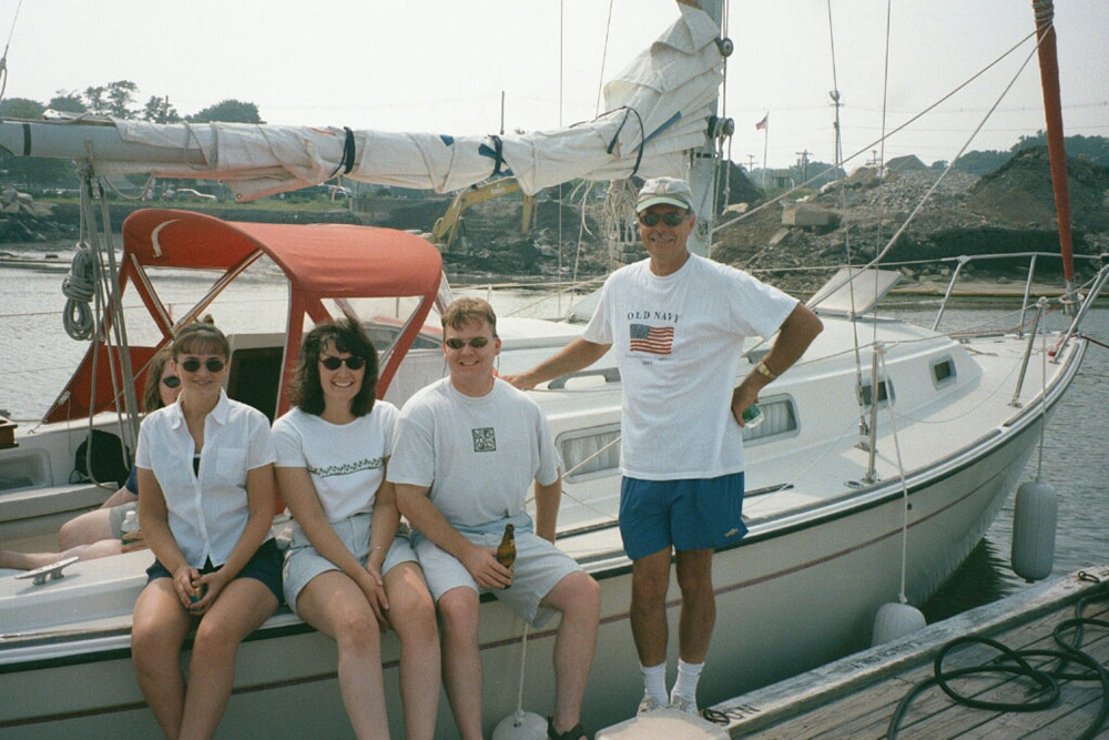 A few years into a consulting career, along with several others, I decided to take a group of 14-or-so team members out for a cruise. Three sailboats, all about the same size, 28-30 feet. Just the right breeze and we quickly headed over to Gallops Island, secured some moorings and enjoyed the Boston skyline. A glance at the sky said, “weather approaching,” so we started back through Hull Gut for Hingham Harbor. Not quite in time. The wind picked up and the rain came down so hard we couldn’t see 20 feet. On board Lollipop, I assigned the helm to Jessica, who was physically the smallest person, but the only one on my boat with any experience. I managed to secure the headsail and lash it to the furler. Fortunately, the mainsail was already down. One passenger was so concerned he said, “Maybe I’ll jump off and swim.” Jessica yelled at him to sit down. We finally saw Hingham Yacht Club through the rain and made it in. Anna Marie didn’t fare so well; her mainsail was ripped and damaged. Third boat Skogie limped in. By agreement, “no more group sails,” and some of the team never set foot on a boat again.