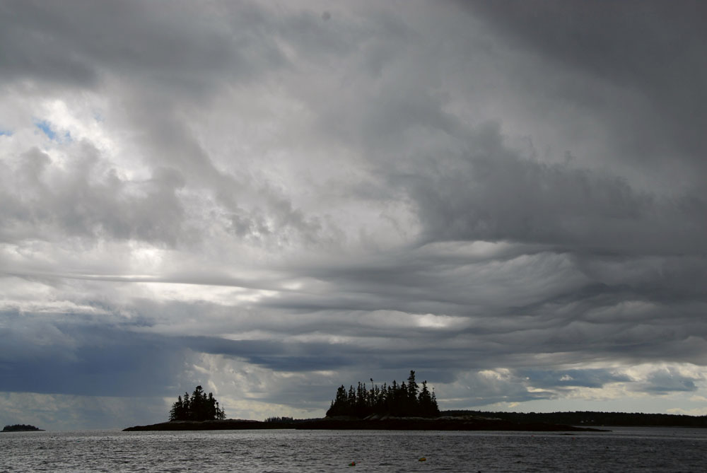 Baker Island was forever coming under the bow; a lunch of sea-salted almonds and cranberries unsatisfying. Blundering along, it took hours and hours to weather Otter Point on Mount Desert Island, the sails strapped in flat as we slanted off toward the North Pole or the Azores.