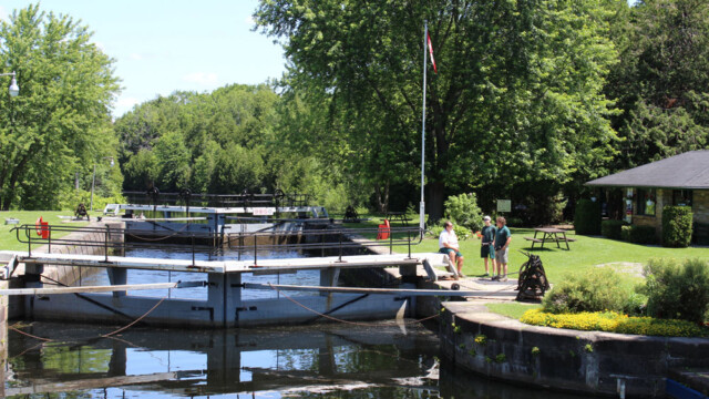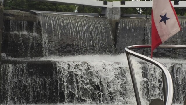 The 49 locks and dams he installed still stand today, as originally built with limestone and timber; some repairs, of course, have been required. However, the original manually operated gates and valves for each lock are still opened by hand by summer staff (students) of Parks Canada. Each lock station has a rest area, restroom and dockage with electricity available at many of them. One season pass for locks, and one for dockage, and you never need a marina ($9.20 per foot Canadian for the dockage pass). Each lock is operated by a wonderful group of kids that works the stations.