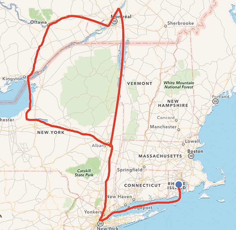 The restrictions of depth (five feet) and height (22 feet) would not be a problem. The new route and shape of the trip was then completed. It would look like a kite, with its top in Ottawa, its left and right sides in Oswego, N.Y., and Sorel, Canada, respectively. The bottom would be Troy, N.Y., and the tail the Hudson River and Long Island Sound. Thus, on June 2, 2015, we began the journey at the East Greenwich (R.I.) Yacht Club aboard our new (to us) Grand Banks 42.