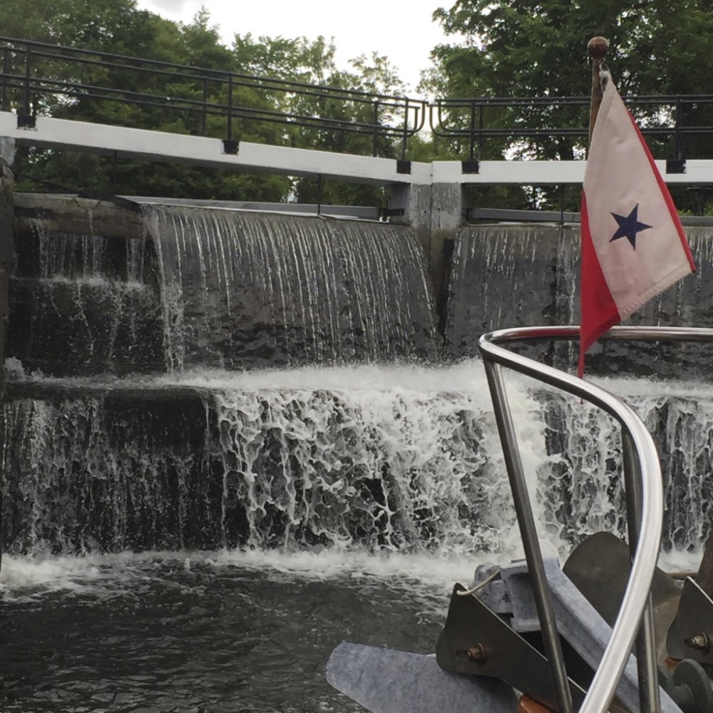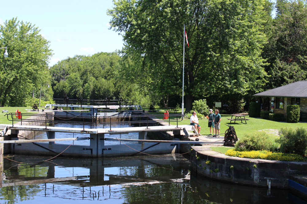 The 49 locks and dams he installed still stand today, as originally built with limestone and timber; some repairs, of course, have been required. However, the original manually operated gates and valves for each lock are still opened by hand by summer staff (students) of Parks Canada. Each lock station has a rest area, restroom and dockage with electricity available at many of them. One season pass for locks, and one for dockage, and you never need a marina ($9.20 per foot Canadian for the dockage pass). Each lock is operated by a wonderful group of kids that works the stations.
