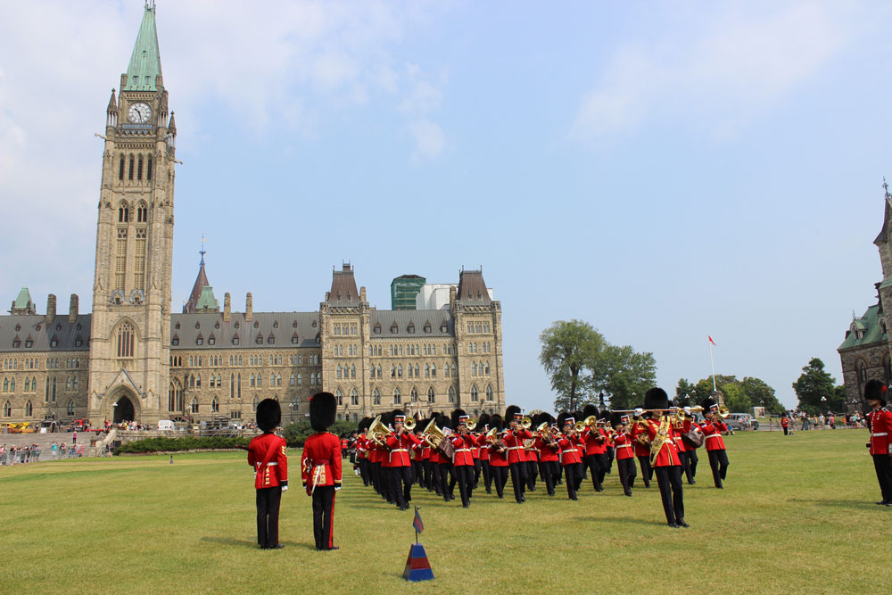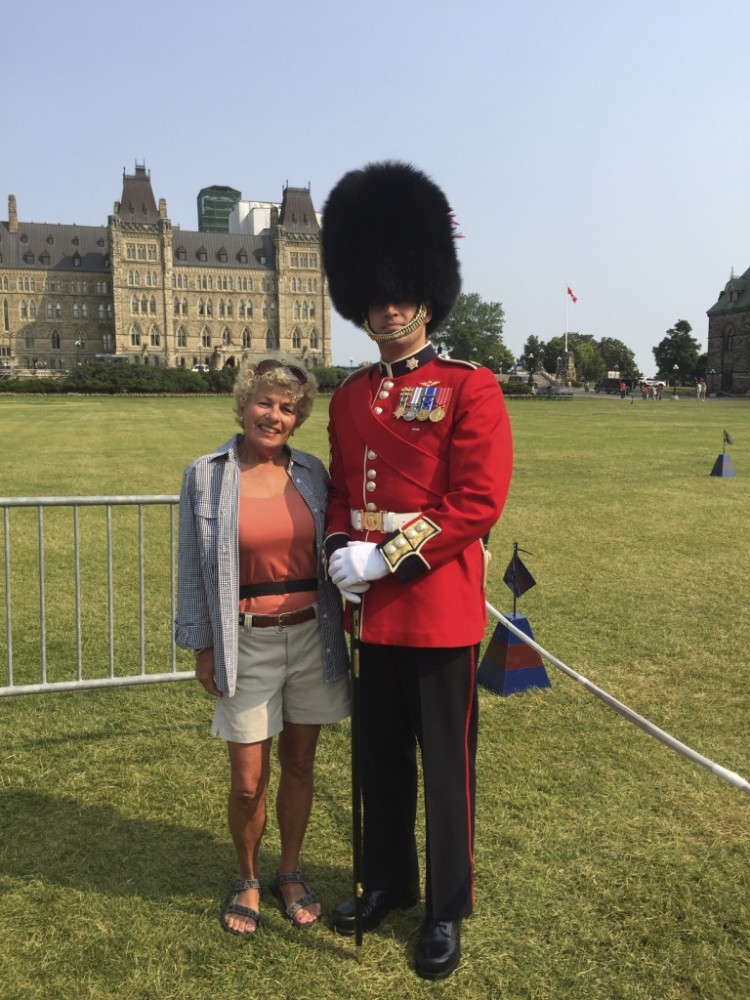 We arrived in Ottawa, the end of the Rideau, to enjoy that big, but still quaint and wonderful, city. We tied up to a wall at the foot of the hill across from the Parliament Building. Every morning, we were in a front-row seat to watch the changing of the Palace Guard. They formed ranks on the side of the hill, played their bagpipes, and marched away to the Parliament building – we followed them for the hour-long ceremony.