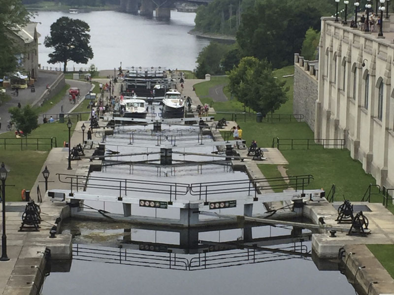 We purchased a cruising guide, “The Down East Loop,” and started planning. Bridge clearances were a concern, as well as depths. As we looked at various charts, tables and websites for the Erie, Oswego, St. Lawrence, Richelieu, St. Ours, Chambly and Champlain canals, we read about another Canadian canal named the Rideau, and it sparked our interest.