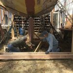 Between sheltering in place last weekend we spent a quick afternoon dropping the keel of AKC Hound, a 1959 Melody 34 yawl, designed by Charles Hunt and Charles Morgan and built by Surfliner Corp. A 60-year-old, fierce looking gal, Hound’s last ride was in 2011, winning her class in the Eggemoggin Reach Regatta. She has been awaiting her turn patiently, and this last weekend she rose to the top of the punch list. Photos are attached, pretty self explanatory.