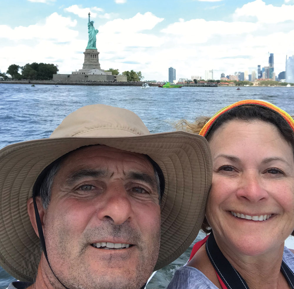 Naturally, the first five of six selfies we took, with the statue behind us, were not good enough, so we made multiple passes back and forth in front of the iconic statue. There were a dozen tour boats full of weekend tourists doing the exact thing we were doing. We finally got a picture in which the statue was centered perfectly between us – and with Diana’s hair in a satisfactory state, no easy feat in those rough, windy conditions.