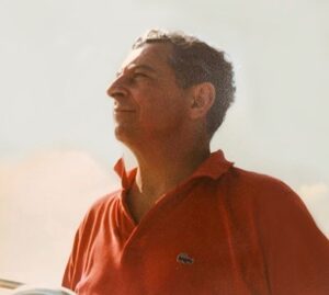 An avid sportsman, Pete was especially passionate about one-design sailboat racing, in which he said the difference between winning and second place came down to the skill of the skipper and “the length of a cotter pin.” He won many awards in a range of boats, but his fondest memories were of frostbiting in his Penguin dinghy in Bristol Harbor and racing his Herreshoff S boat, Lady Luck, with his seasoned crew. A dedicated rower, Pete would do his “nautical jogging” every morning before work, a fishing line trailing over the transom of his ocean-going dory. Pete also earned a pilot’s license at age 16, ran an aerial photography business while in college, and later in life completed an epic, months-long cross-country flying trip with co-pilot Dan Rumplik. It was something he’d always dreamed of doing.