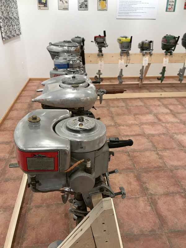 Last month, in the library of my town of Marblehead, Massachusetts, my friend and neighbor put on a world-class exhibition. Not of books, art or music. But of antique outboard motors – 20 of them. It was an exhibit of the first 50 years of outboards. These antiques were carefully displayed in a manner on par with a traveling exhibit of old masters from the art world. The motors ranged from the single cylinder Evinrude “Model A” Detachable Rowboat Motor, dating back to around 1910, to the beautiful Mercury Mark 15, from 1953. It was fascinating to see how outboards evolved in design, appearance and performance. I was transfixed, studying such motors from the past as Johnson, Elto, Lockwood, Caille, Bendix, Neptune, Flambeau, Martin, Wizard, Elgin and Scott-Atwater.