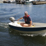 And…. she’s launched! Points East and Chase Small Craft launched the Points East pram on Friday, July 15 at Marston’s Marina in Saco, Maine. It was a beautiful day for a beautiful little boat. Despite her compact eight feet, the pram proved herself to be