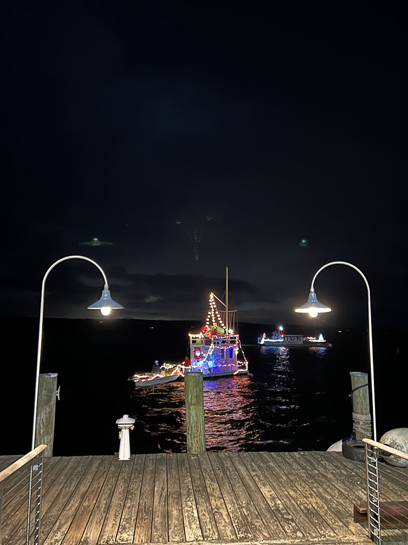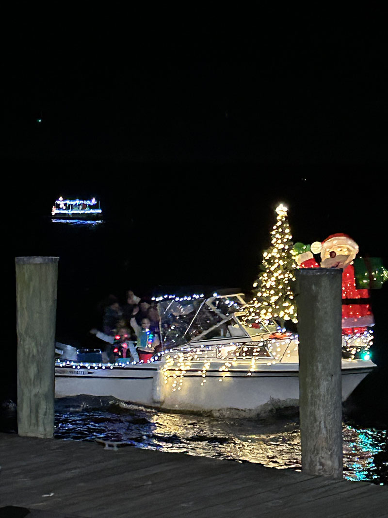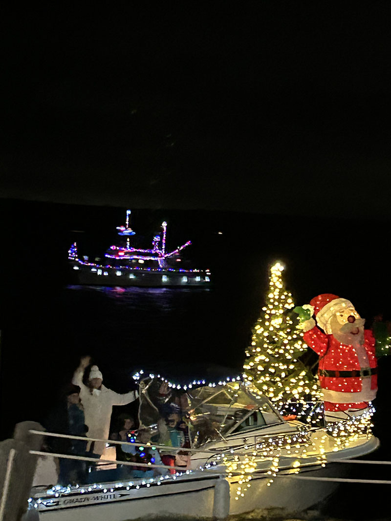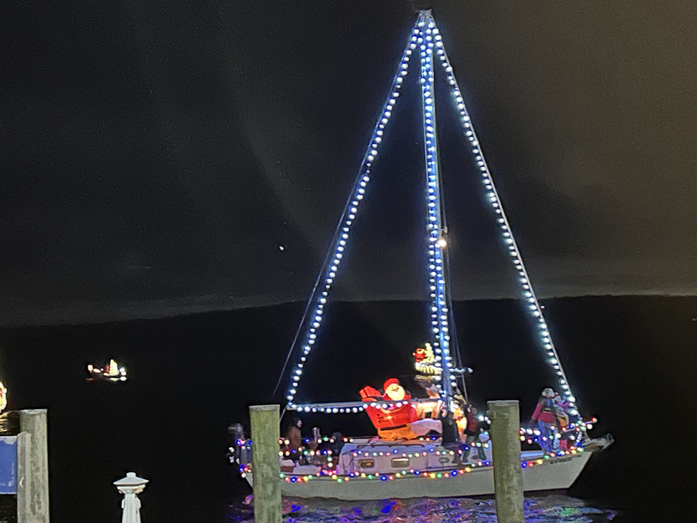 Here’s some holiday cheer from the Trees in the Rigging on-land and in-water boat parade held Nov. 26 in Essex, Ct. Thanks to Sue and Bob Cornell for capturing the images.