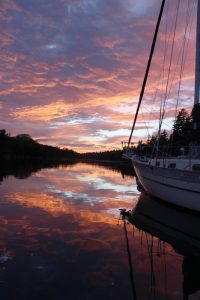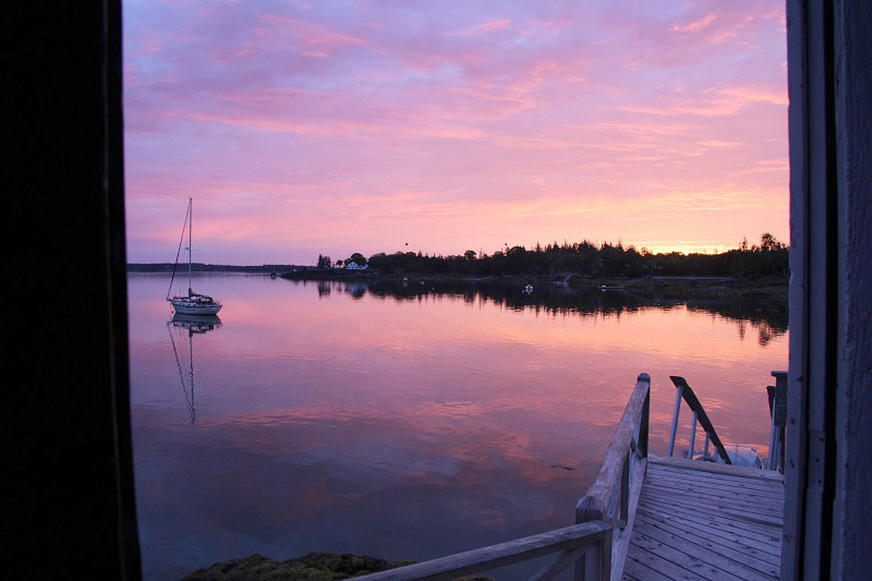 September is prime cruising weather, especially when the days begin and end with such lovely colors. Here are some from our very own Lynn Whitney! Above, sunrise on the Fox Island Thorofare taken through the boathouse doors. At right, sunset on Perry’s Creek. We’d love to see some from you as you are out and about in the waning, but beautiful, days of summer and early fall.
