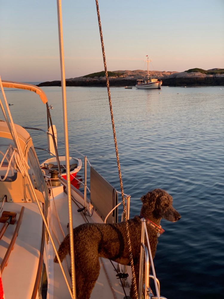 The dog, also named Bill, is mine and the boat he is standing on is my Morris Justine named Sundance.