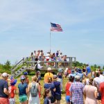 At the top of the hill, the sun and breeze work to dry people off. The raised viewing platform serves as a pulpit where the summer preacher calls the town to attention. A short prayer is followed by a moment of silence for those in the community who have died in the past year, and that’s followed by everyone singing “God Bless America.” The simple joy of singing together in community, on a hilltop surrounded by the sea, is relished by all.