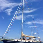In midmorning, the mood changes from relaxed to festive. Could it be that people are drinking at this early hour? Yes, it could be they are. Soon someone decides to crank up a Souza march on the stereo while her neighbor goes about dressing ship with signal flags. Quickly a dozen boats are so dressed, and the party has begun.